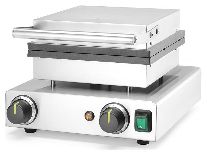 Аппарат для корн-догов HENDI Lolly 212165 используется на предприятиях общественного питания и торговли для приготовления корн-догов - фигурных вафель на палочке. При желании можно использовать различные начинки - сыр, бекон, запекать сосиски в вафле. Модель оснащена терморегулятором и электронным таймером на 15 мин. Корпус выполнен из нержавеющей стали 18/10, жарочная поверхность - из литого алюминия с антипригарным тефлоновым покрытием.