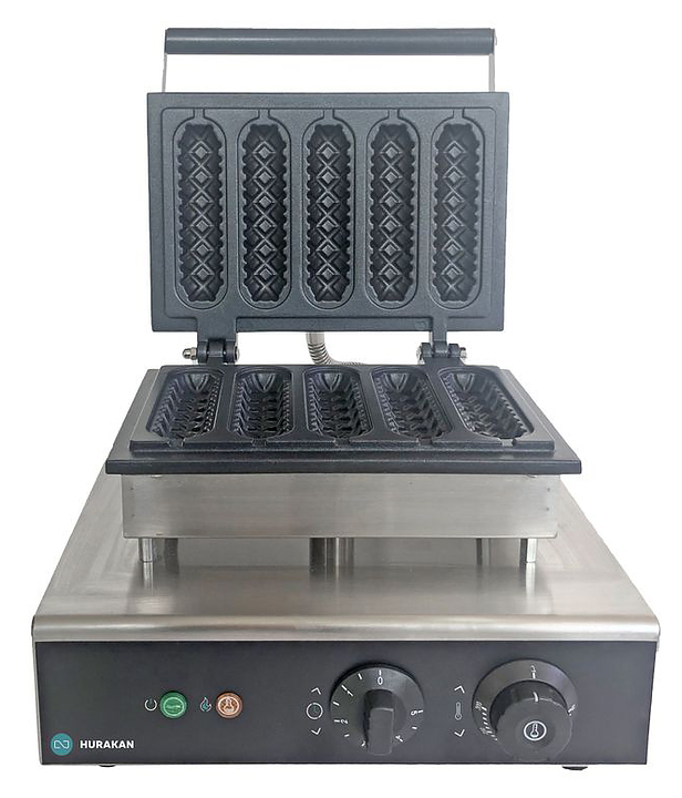 Аппарат для корн-догов Hurakan HKN-HCP5 используется на предприятиях общественного питания и торговли для приготовления хрустящих сосисок в тесте. Корпус выполнен из металла, жарочные поверхности - из чугуна.