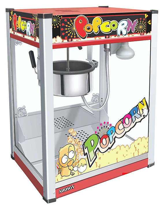 Аппарат для попкорна Airhot POP-6E используется на предприятиях общественного питания и торговли. Модель оснащена съемной чашей с антипригарным тефлоновым покрытием, подсветкой готового продукта и поддоном для сбора нераскрывшихся зерен и шелухи. Корпус выполнен из алюминия, стенки - из упрочненного стекла, задняя стенка - из оргстекла.
