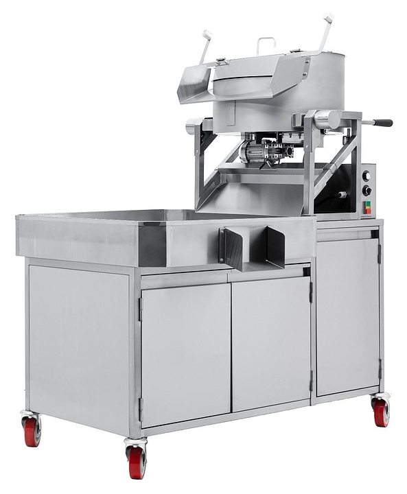 Аппарат для попкорна RoboLabs GOLIAF предназначен для раскрытия кукурузного зерна при помощи горячего воздуха на предприятиях пищевой промышленности. Модель оснащена системой перемешивания и автоматической системой залива масла, включая подогреваемую трубку. Оборудование выполнено из нержавеющей стали.