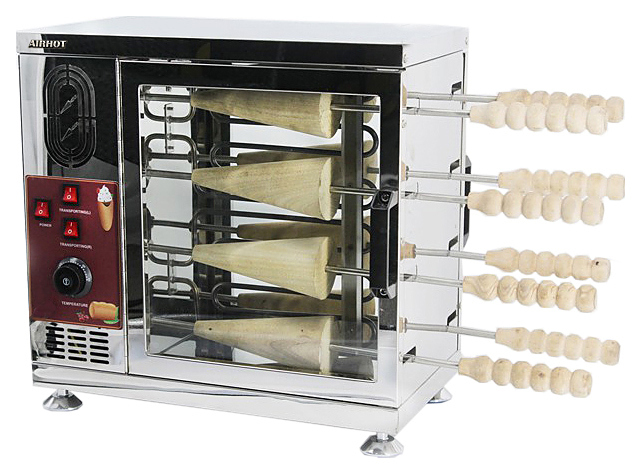 Аппарат для трдельников Airhot TM-8используется на предприятиях общественного питания и торговли для выпечки чешских трубочек. Модель оснащена терморегулятором и подсветкой. Корпус выполнен из нержавеющей стали.
