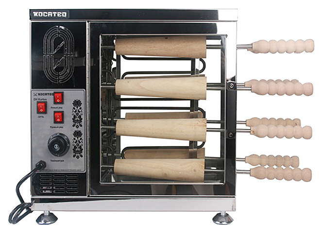 Настольная печь для трдельников Kocateq DHKurtos используется на предприятиях общественного питания и торговли, в пекарнях и кондитерских для выпечки до 8 венгерских калачей. Модель оснащена панелью управления, термостатом для автоматического поддержания температуры. Корпус выполнен из нержавеющей стали AISI 201, ножки - из металла, с пятками - из пластика.