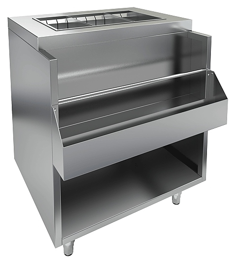 Барная станция HICOLD НБМВЛ-9/7К предназначена для комплектации барных стоек, оборудована ванной для льда и лотком с дополнительным карманом.