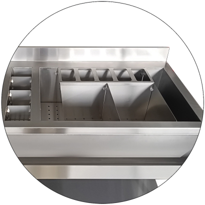 - Накладки для установки гастроемкостей удобно снимать, если они в какой-то момент не нужны или их нужно помыть.