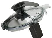 В комплект поставки входят зазубренный нож со съемным колпачком для очистки, чаша, нож, крышка и скребок.