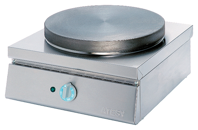 Блинница ATESY Масленица БА-1/2,5используется на предприятиях общественного питания и торговли для выпекания традиционных русских блинов круглой формы. Модель оснащена ручкой терморегулятора, позволяющей осуществлять регулировку температуры жарочной поверхности. Корпус выполнен из нержавеющей стали, жарочная поверхность - из жаропрочного чугуна.