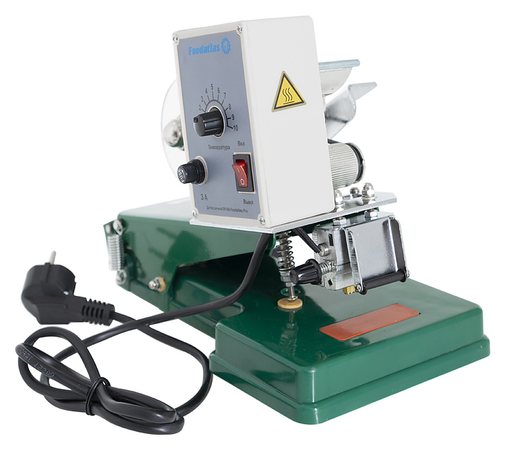 Ручной датер Foodatlas DY-6A Pro используется на предприятиях общественного питания и торговли для нанесения чернильной печати на полиэтилен, алюминиевую бумагу, выделанную кожу и другие упаковочные материалы. Модель оснащена регулировкой температуры. Аппарат позволяет проставить дату производства, срок хранения, номер партии, вес, цену и прочие показатели.
