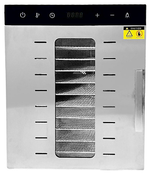 Дегидратор Eksi EKD-10G предназначен для сушки фруктов, овощей и грибов на предприятиях общественного питания и торговли. Модель оснащена цифровой панелью управления, таймером на 4 часа и 10 лотками. Корпус выполнен из нержавеющей стали.