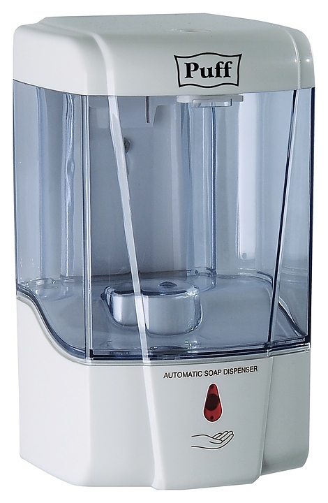 Автоматический сенсорный дозатор Puff 8180 предназначен для размещения и дозированной подачи жидкого мыла в санитарных узлах офисов, гостиниц, предприятий общественного питания, медицинских учреждений и других мест средней проходимости. Модель оснащена датчиком приближения. Корпус изготовлен белого ударопрочного АБС-пластика.