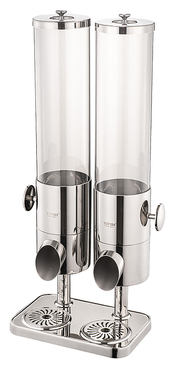 Диспенсер F&B Project C15-8X2 предназначен для порционной раздачи сыпучих продуктов, таких как мюсли или кукурузные хлопья на предприятиях общественного питания и в домашних условиях. Модель оснащена прозрачными емкостями, ручками для удобства дозирования и крышками. Корпус выполнен из нержавеющей стали и акрила.