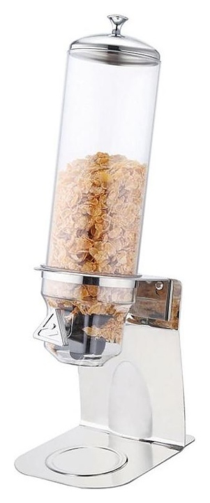 Диспенсер Sunnex U13-1100 используется на предприятиях общественного питания и в домашних условиях для порционной раздачи сыпучих продуктов, таких как мюсли или кукурузные хлопья. Модель состоит из емкости с рукояткой и подставки. Изделие выполнено из прозрачного материала.