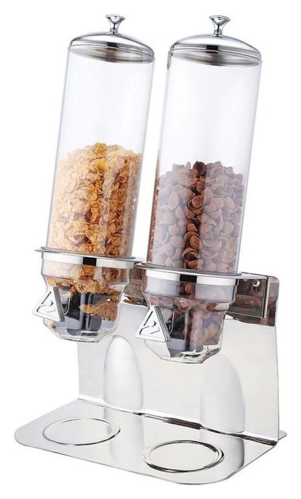 Диспенсер Sunnex U13-1200 используется на предприятиях общественного питания и в домашних условиях для порционной раздачи сыпучих продуктов, таких как мюсли или кукурузные хлопья. Модель состоит из 2 емкостей с рукоятками и подставки. Изделия выполнены из прозрачного материала.