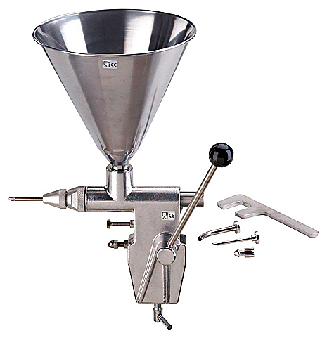 Дозатор начинки Pavoni DOSIMINI используется в пекарнях и кондитерских, на предприятиях пищевой промышленности и общественного питания для наполнения кондитерских изделий начинкой из шоколада, меда, джема и заварного крема. Модель оснащена ручным режимом работы. Изделие крепится к столу. Ручка и загрузочный желоб - из нержавеющей стали AISI 304.