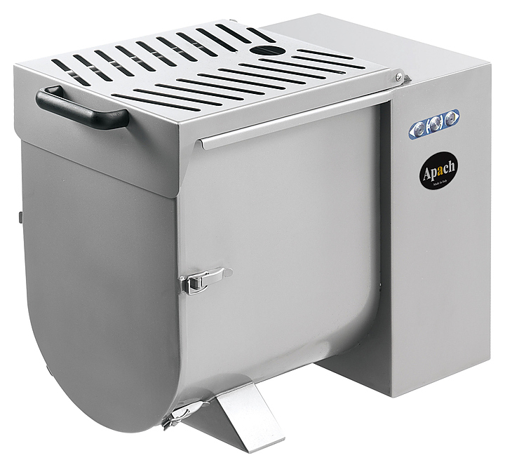 Фаршемешалка Apach AMK50 используется на предприятиях общественного питания и торговли для перемешивания измельченного мяса или рыбы в однородную смесь. Вымешивающее устройство лопастного типа позволяет получить фарш однородной консистенции. Модель оснащена крышкой с микровыключателем и функцией реверса. Корпус и съемная лопасть выполнены из нержавеющей стали.