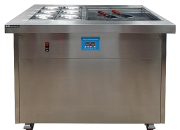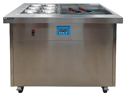 Фризер для жареного мороженого Hurakan HKN-FIC50SXL используется на предприятиях общественного питания и торговли для приготовления десерта на "ультрахолодной сковороде". Модель оснащена прямоугольной рабочей поверхностью, 6 встроенными отсеками для ингредиентов с независимым охлаждением, 2 компрессорами и колесами для легкого перемещения оборудования. Фризер работает на хладагенте R410a.