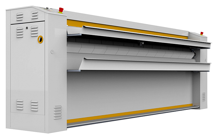 Гладильный каландр GMP G26.35 предназначен для прачечных с требованиями к широкой поверхности глажения. Полезная длина составляет 2,58 м. Благодаря специально разработанному прижимному ролику данный каландр позволяет работать с различными тканями, включая такие сложные как шелк, атлас, органзу и вышитые ткани.
