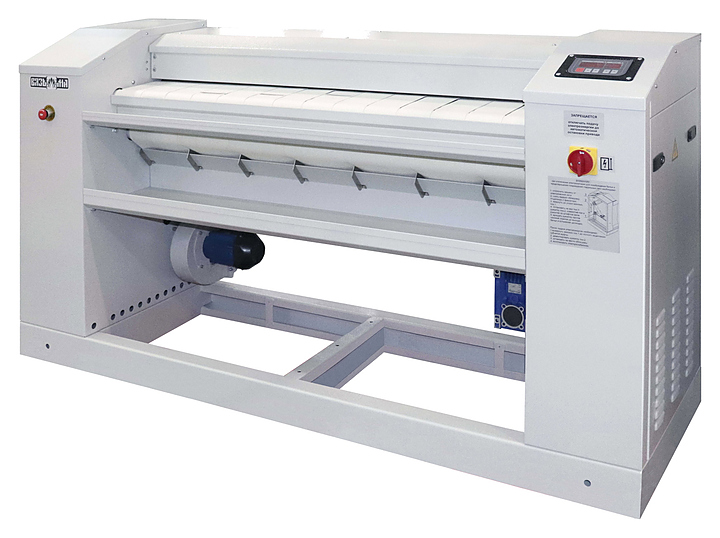 Гладильный каландр Вязьма ВК-1840Писпользуется в прачечных образовательных, оздоровительных заведениях, производственных предприятиях, в поликлиниках, гостиницах, детских садах, общежитиях, больницах, роддомах и воинских частях для сушки и глажения прямого белья с остаточной влажностью 50%. Модель имеет возможность устанавливать различные программы обработки белья в зависимости от типа ткани. Гладильные ленты изготовлены из термостойкого и прочного армированного материала NOMEX и Meta Armid, а ленты подающего транспортера - из армированного материала NOMEX, вал - с хромированным покрытием.