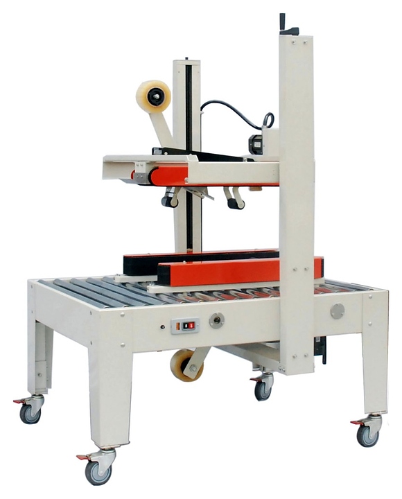 Полуавтоматический заклейщик Hualian FXJ-8070B используется на предприятиях различных отраслей для герметизации упаковочных картонных коробов клейкой лентой. Модель оснащена рабочим столом с сегментной роликовой поверхностью, 2 вертикальными направляющими с ленточными конвейерами снизу, прижимной направляющей с ленточным конвейером сверху, рулонодержателем для клейкой ленты и панелью управления на боковой стенке.