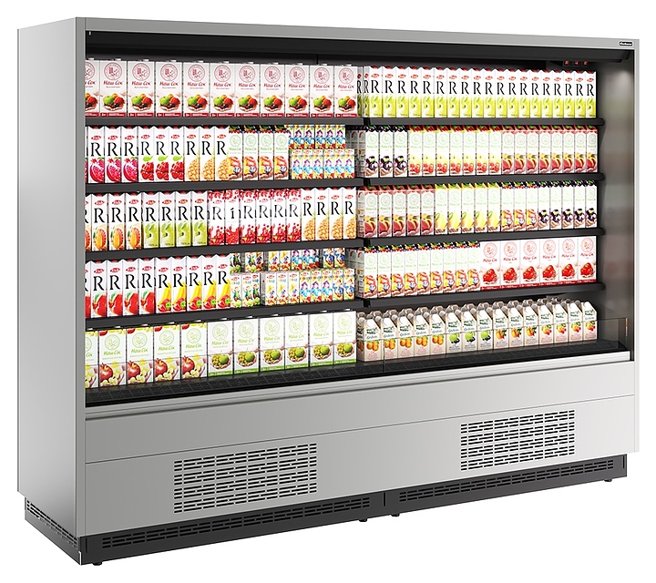 Холодильная горка Carboma FC 20-07 VM 2,5-2 версия 2.0 серии Cube 2 используется на предприятиях общественного питания и торговли для охлаждения, кратковременного хранения и предпродажной демонстрации напитков, мяса, птицы, полуфабрикатов, молочных и гастрономических изделий. Модель оснащена 4 рядами навесных полок с кронштейнами, глухими боковинами с зеркалами на внутренней поверхности, подставкой с фронтальной термовыводящей и цокольной решетками. Корпус прямоугольно ориентированной формы выполнен из стали с антикоррозийным покрытием внешних панелей, полок и кронштейнов серого цвета (RAL 9006), цоколя и интерьера черного цвета (RAL 9005), теплоизоляция – из пенополиуретана.
