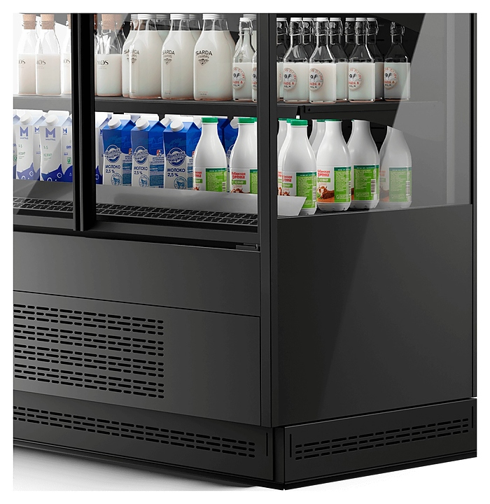 Холодильная горка Dazzl Vega DG 070 H195 F 250 Plug-in предназначена для эффектной демонстрации и кратковременного предпродажного хранения различных фруктов и овощей на предприятиях общественного питания и торговли. Модель оснащена подставкой с встроенным холодильным агрегатом, воздухопроводящими решетками, распашными дверьми и 4 навесными экспозиционными полками с наклонными профилями ценникодержателей. Двери с прозрачными стеклопакетами с низкоэмиссионным твердым покрытием.