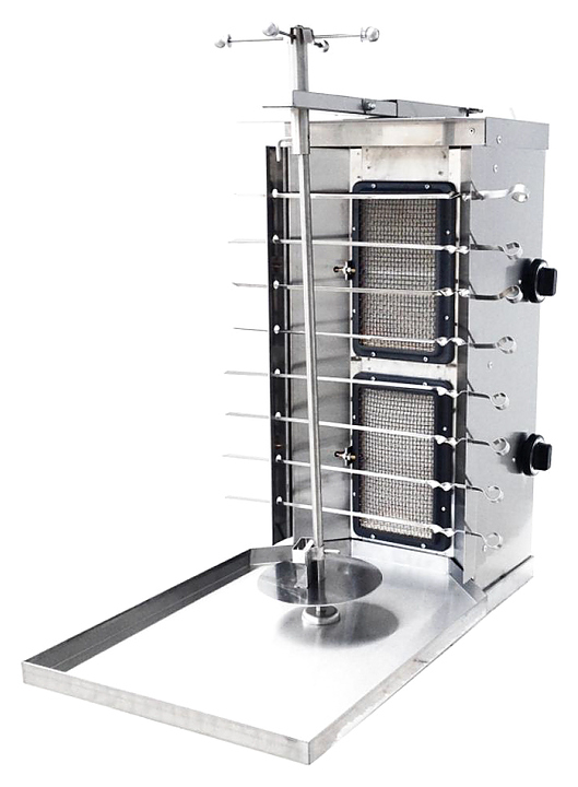 Газовый гриль для шаурмы Grill Master Ф2ШМГ предназначен для запекания специально подготовленного свиного, говяжьего, бараньего и куриного мяса, используемого для приготовления шаурмы, на предприятиях общественного питания и торговли. Модель оснащена 2 беспламенными горелками с системой газ-контроль и поддоном для мяса. Оборудование выполнено из нержавеющей стали.