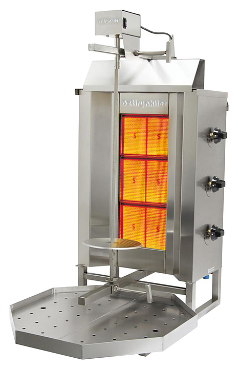 Газовый гриль для шаурмы OZTI 3GD предназначен для обжарки большого количества различных видов мяса и птицы на предприятиях общественного питания, а также в производственных цехах, деятельность которых связана с выпуском гастрономических товаров. Корпус выполнен из нержавеющей стали.