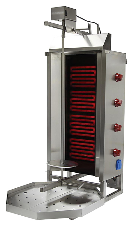 Гриль для шаурмы OZTI 4E предназначен для обжарки большого количества различных видов мяса и птицы на предприятиях общественного питания, а также в производственных цехах, деятельность которых связана с выпуском гастрономических товаров. Корпус выполнен из нержавеющей стали, панель перед нагревательными элементами - из керамического стекла.