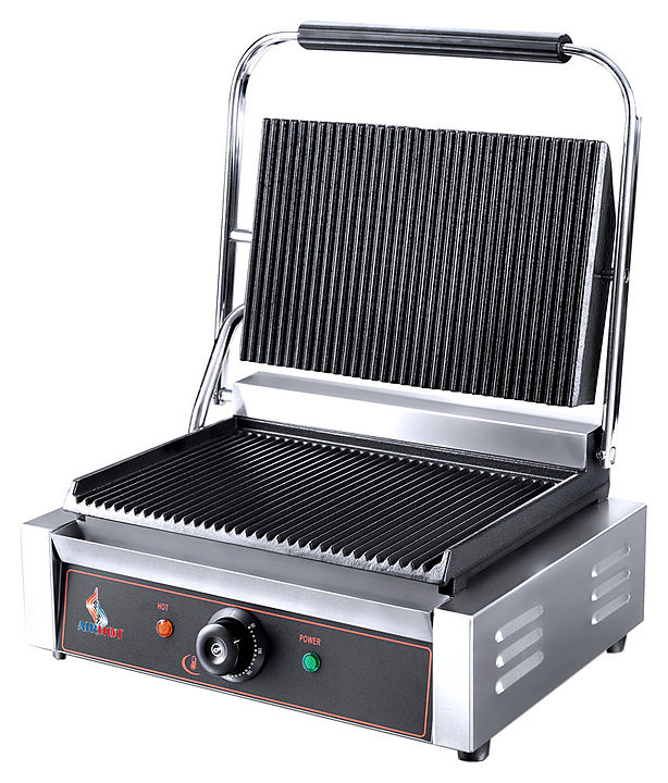 Прижимной гриль Airhot CGL предназначен для жарки мяса, птицы, рыбы, овощей, а также для приготовления стейков, гамбургеров и горячих сэндвичей на предприятиях общественного питания и торговли. Высокая скорость приготовления достигается благодаря встроенным в обе части аппарата тепловым элементам, которые плотно прилегают к продукту. Модель оснащена терморегулятором и съёмным поддоном для сбора жира и крошек. Корпус выполнен из нержавеющей стали, жарочная поверхность - из чугуна с антипригарным покрытием.