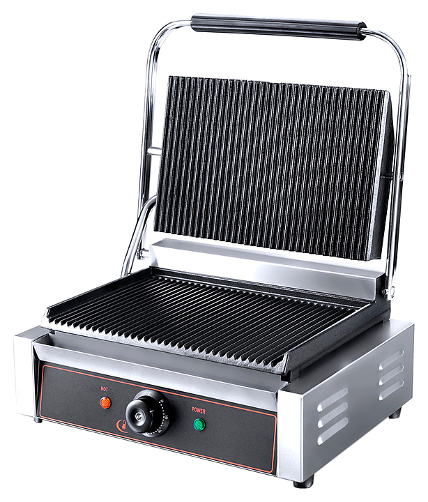 Прижимной гриль Hualian HEG-811E предназначен для жарки мяса, птицы, рыбы, овощей, а также для приготовления стейков, гамбургеров и горячих сэндвичей на предприятиях пищевой промышленности, общественного питания и торговли. Модель оснащена механической панелью управления с терморегулятором и съемным поддоном для сбора жира и крошек. Корпус выполнен из нержавеющей стали.