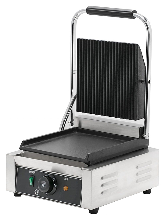 Прижимной гриль Hurakan HKN-PE34L предназначен для обжаривания стейков и сосисок, приготовления сэндвичей, полуфабрикатов, подогрева булочек, гамбургеров, хот-догов на предприятиях общественного питания и торговли. Высокая скорость приготовления достигается благодаря встроенным в обе части аппарата тепловым элементам, которые плотно прилегают к продукту. Модель оснащена регулируемым термостатом, индикатором нагрева и лотком для сбора жира. Корпус выполнен из нержавеющей стали.