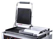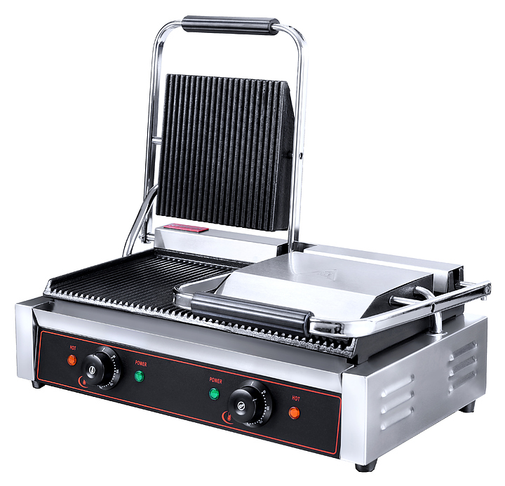 Контактный гриль Rosso HEG-813E предназначен для жарки мяса, птицы, рыбы, овощей, а также для приготовления стейков, гамбургеров и горячих сэндвичей на предприятиях пищевой промышленности, общественного питания и торговли. Модель оснащена двумя верхними и одной нижней рифлеными поверхностями нагрева. Корпус выполнен из нержавеющей стали.