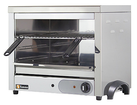 Гриль Salamander FIAMMA SEF 450 предназначен для обжаривания стейков и сосисок, приготовления сэндвичей, полуфабрикатов, подогрева булочек, гамбургеров, хот-догов и поддержания готовых блюд в разогретом состоянии на предприятиях общественного питания и торговли. Модель оснащена 2 зонами нагрева, регулятором мощности и поддоном для сбора жира и крошек. Корпус выполнен из нержавеющей стали.