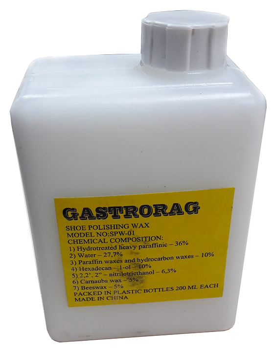 Бесцветный универсальный крем GASTRORAG SPW-01используется совместно с машинкой для чистки обуви JCX-12 в отелях, офисах, частных домах и квартирах. Одного контейнера хватает на обработку 200-300 пар обуви. Модель оснащена дозатором, расположенным сбоку. Емкость выполнена из пластмассы.