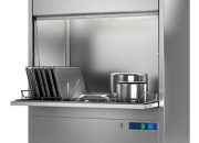 Котломоечная машина Hobart Profi UXT используется на предприятиях общественного питания и торговли для мойки больших кастрюль, тарелок, стаканов, бокалов, столовых приборов, а также гастроемкостей и противней. Модель оснащена датчиком загрязнения фильтра. Задняя панель, бак, каркас, моющие и ополаскивающие рукава, панели изготовлены из нержавеющей стали 1.4301.