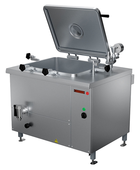 Пищеварочный котел Проммаш КЭ-160 используется на предприятиях общественного питания и торговли для кипячения воды, приготовления напитков, бульонов и первых блюд. Модель оснащена прямоугольным сосудом для варки и внешним металлическим коробом с герметичной крышкой с уплотнительной прокладкой и прижимными рычагами. Каркас выполнен из крашеного металла, облицовки - из нержавеющей стали.