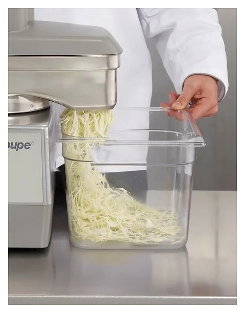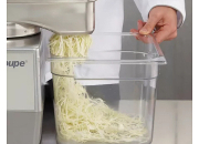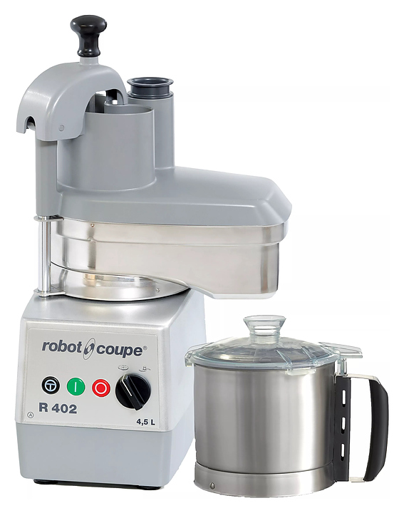 Кухонный процессор Robot Coupe R402 используется на предприятиях общественного питания и торговли для всех видов нарезки, замешивания и измельчения продуктов питания. Насадка-овощерезка оснащена 2 воронками: большая - для нарезки крупных овощей как капуста и сельдерей, круглая - для длинных овощей. Аппарат представляет собой куттер и овощерезку в одном виде.