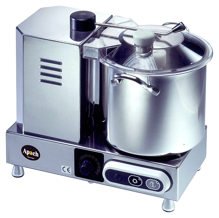 Куттер Apach ACT6 предназначен для измельчения, взбивания и смешивания продуктов, приготовления кремов, паштетов и соусов на предприятиях общественного питания и торговли. Модель оснащена вентилируемым мотором, съемной дежой с теплопроводящим днищем и ручками и прозрачной крышкой с запорным рычагом и отверстием для добавления ингредиентов в процессе работы. Корпус выполнен из нержавеющей стали AISI 304, дежа - из нержавеющей стали 18/10, ножи - из закаленной нержавеющей стали AISI 420.