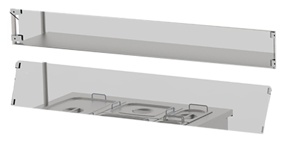 Комплект защитных экранов Abat 21000002686 используется в составе линии раздачи Аста и Патша, а также для мини-линий раздач совместно с мармитами первых, вторых блюд, открытыми и охдаждаемыми прилавками, например ЭМК-70КМ-01 для защиты готовых блюд от воздушно-капельных инфекций и пыли. Модель оснащена системой крепления Joker. Аксессуар выполнен из стекла.