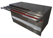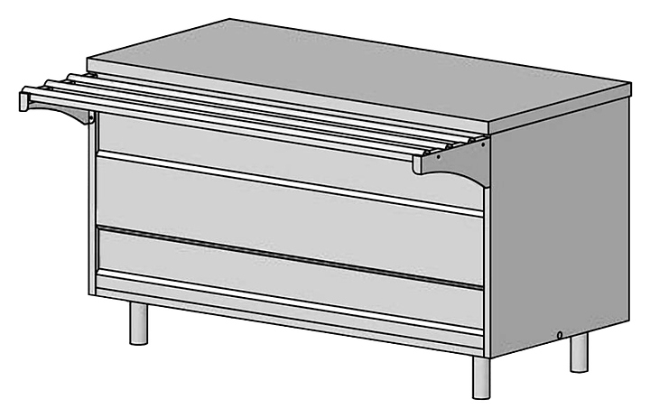 Прилавок тепловой ЦМИ Волга ПТ-150 используется в составе линии раздачи 700 Волга на предприятиях общественного питания и торговли для кратковременного хранения готовой продукции в теплом состоянии. Модель оснащена обогревом внутреннего объема тумбы и распашными дверцами. Оборудование выполнено из нержавеющей стали.