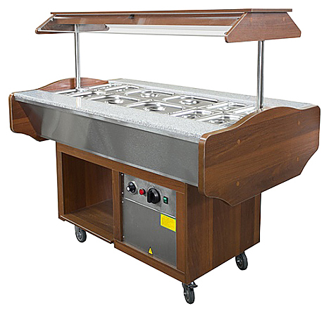 Мармит Пищевые Технологии МЭП-2Б-ШС-Г предназначен для кратковременного сохранения в горячем состоянии вторых блюд, соусов и гарниров в составе линий раздач или самостоятельно на предприятиях общественного питания и торговли. Модель оснащена нишей с электронагревателями и гнездами для установки гастроемкостей и колесами. Каркас выполнен из трубы, покрытой порошковой краской, столешница - из гранита, обшивка и полка - из ЛДСП.