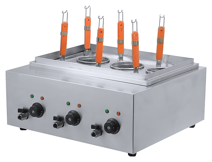 Макароноварка Enigma IEN-6A используется на предприятиях общественного питания и торговли для отваривания всех видов макаронных изделий, гарниров из круп, пельменей и вареников, яиц, морепродуктов и т.д. Модель оснащена 6 цилиндрическими корзинами и 3 рабочими зонами.