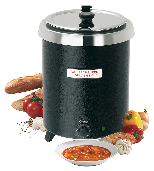 Мармит Bartscher Club 100067 предназначен для поддержания в горячем состоянии первых блюд в течение длительного времени на предприятиях общественного питания и торговли. Модель оснащена термоизолированными ручками и отверстием для ложки. Корпус выполнен из лакированной нержавеющей стали, съемный котел и откидная крышка - из нержавеющей стали.