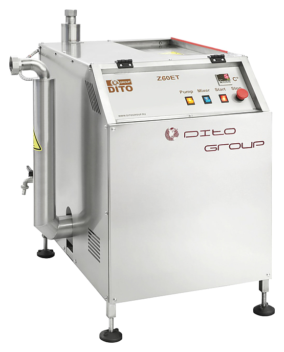 Бак для плавки глазури DITO Group Z60ЕТ используется совместно с машиной для глазирования и декорирования ZETA 400 для плавки и поддержания в расплавленном состоянии не большого объема шоколада и последующей перегрузки / перекачки в глазировочные / темперирующие машины в пекарнях и кондитерских, на предприятиях пищевой промышленности и общественного питания. Модель оснащена баком, обогреваемом на водяной бане, и мешалкой для постоянного перемешивания продукта. Бак полностью выполнен из нержавеющей стали марки AISI 304.