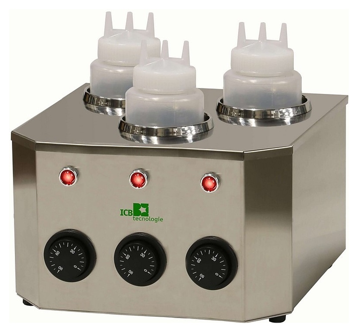 Подогреватель топпинга ICB tecnologie s.r.l. 09.WS3 предназначен для поддержания в теплом состоянии и разогрева топпингов и соусов на предприятиях общественного питания и торговли. Модель оснащена аналоговыми термостатами и тремя бутылками. Корпус выполнен из нержавеющей стали, бутылки - из пластика.