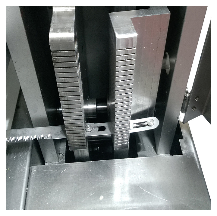 Лезвия сдвоенного ножа двигаются возвратно-поступательно для обеспечения ровного среза без замятия поверхности, по сравнению с ручным разрезанием