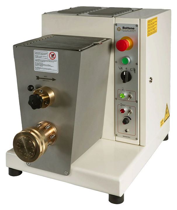 Машина для пасты Bottene PM50 используется на предприятиях общественного питания и торговли для производства макаронных изделий из любых типов муки, а также цветной пасты с добавлением дополнительных ингредиентов. Модель сочетает в себе тестомес и экструдер для выдавливания макарон, оснащена съемными для очистки шнеком и миксером. Корпус выполнен из окрашенной стали, чаша и миксер - из нержавеющей стали.