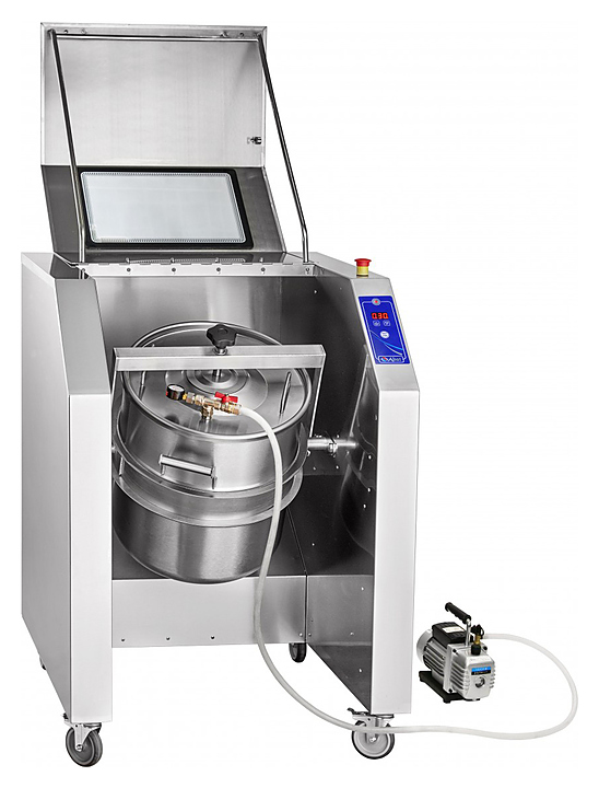 Вакуумный мясомассажер Abat ММ-50В используется используется на предприятиях общественного питания и торговли для маринования различных видов мяса и птицы, кроме того мясомассажер значительно ускоряет операцию посола, улучшает вкусовые и физические показатели сырья. Модель оснащена электронной панелью, кнопкой аварийной остановки, съемным барабаном и колесными опорами. Каркас, обшивка корпуса и детали выполнены из нержавеющей стали