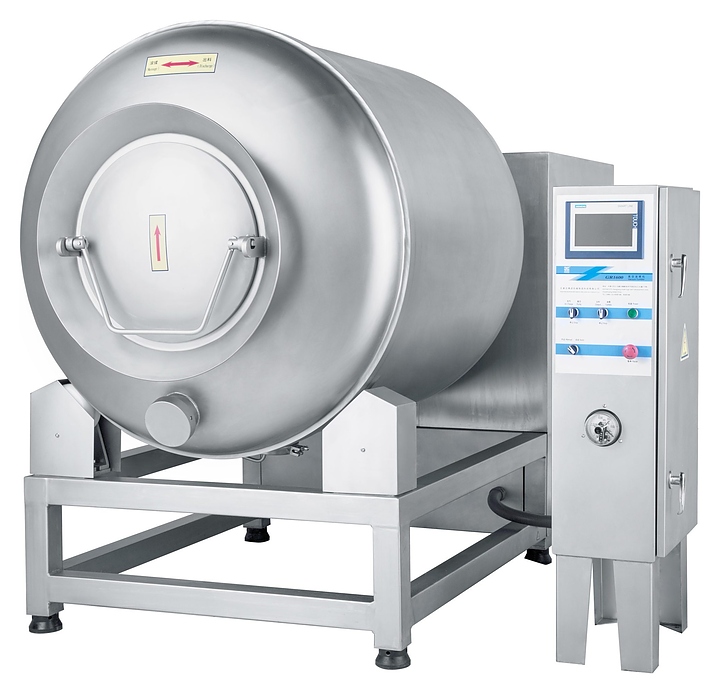 Вакуумный массажер Hualian GRZK3500 используется на предприятиях общественного питания и торговли для сухого и влажного посола, маринования, выдержки и подвяливания мяса, рыбы или птицы. Модель оснащена современным PLC-контроллером, регулируемой скоростью вращения барабана и сенсорной панелью управления. Массажер выполнен из высококачественной пищевой нержавеющей стали SUS304.