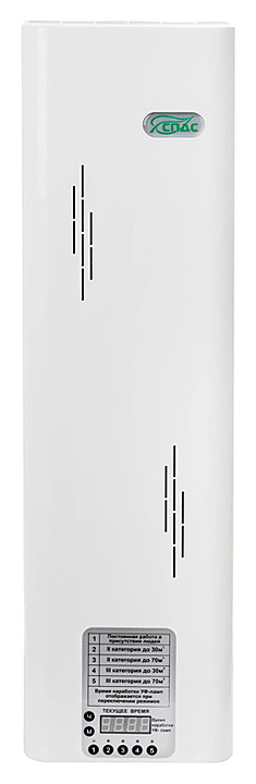 Информационное табло показывает текущее время и время наработки УФ-ламп
