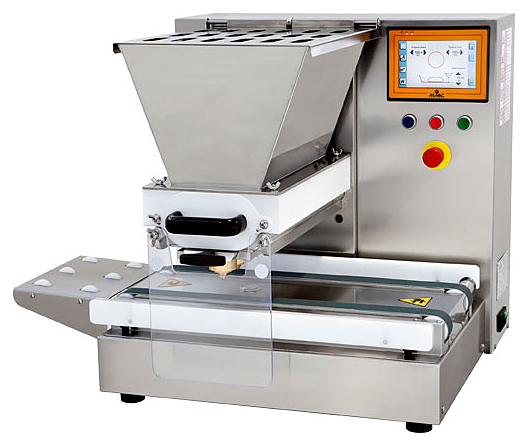 Отсадочно-дозировочная машина Mimac Babydrop 400R предназначена для производства песочного печенья, эклеров, миндального печенья, безе и других кондитерских изделий в пекарнях и кондитерских, на предприятиях пищевой промышленности и общественного питания. Модель оснащена микропроцессором последнего поколения и электронной сенсорной панелью управления Touch Screen размером 7 дюймов, позволяющей управлять всеми функциями и запоминать до 40 программ. Корпус выполнен из алюминия, обшивка - из нержавеющей стали, нагнетающие валки - из пластика.